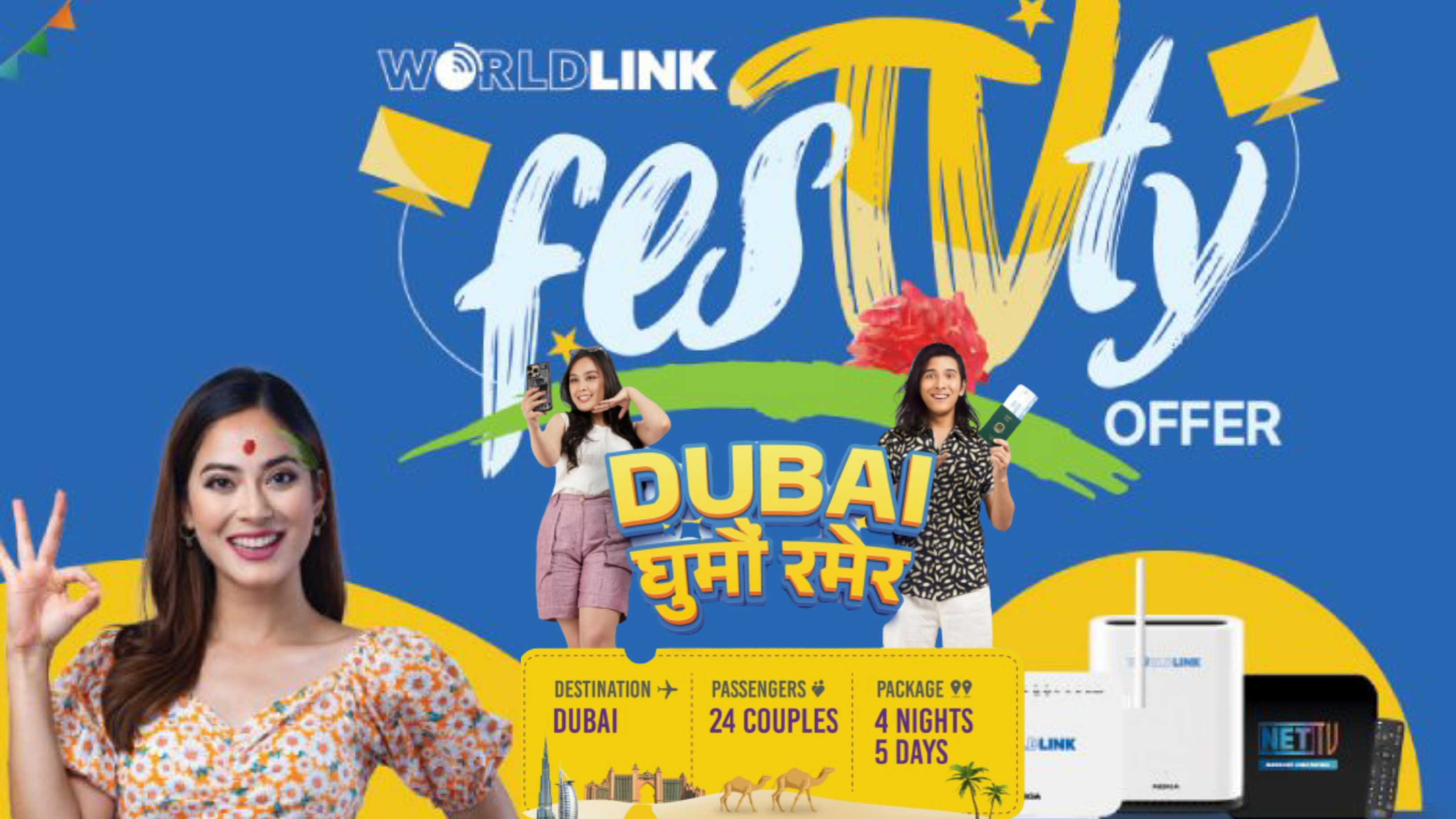 WorldLink Dashain Offer 2080 has an offer for the WorldLink user who will be able to participate under the via submit payment for 3 months and 12 months only. They are eligible to win a Dubai trip and other Samsung products at a discounted price. This offer will be running until November 31st only during this festival time.